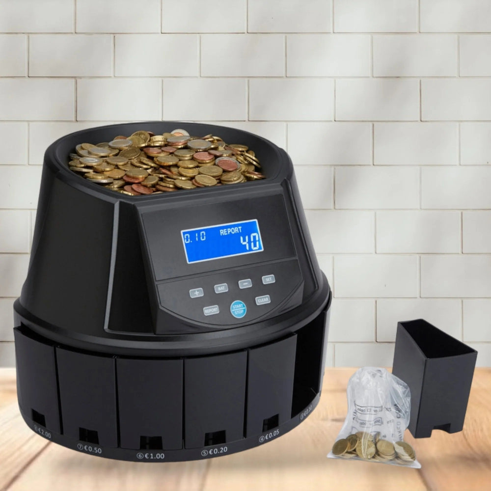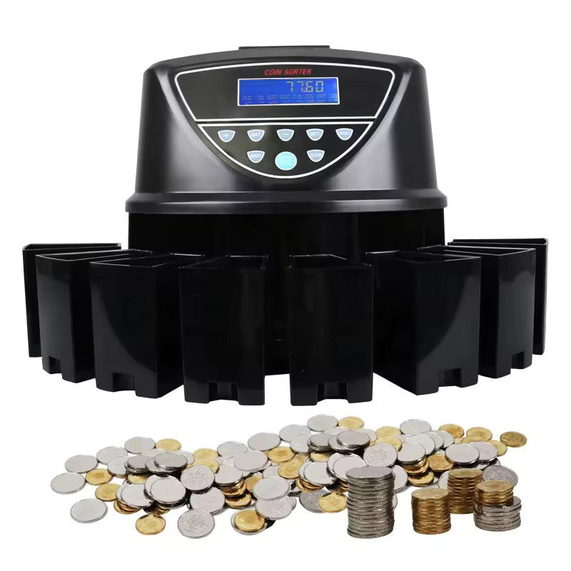 Broji i sortira pomiješane KM, EURE itd...kovanice u različitim apoenima do 300 kovanica u minuti (približno 5 kovanica u sekundi ovisno o apoenima).