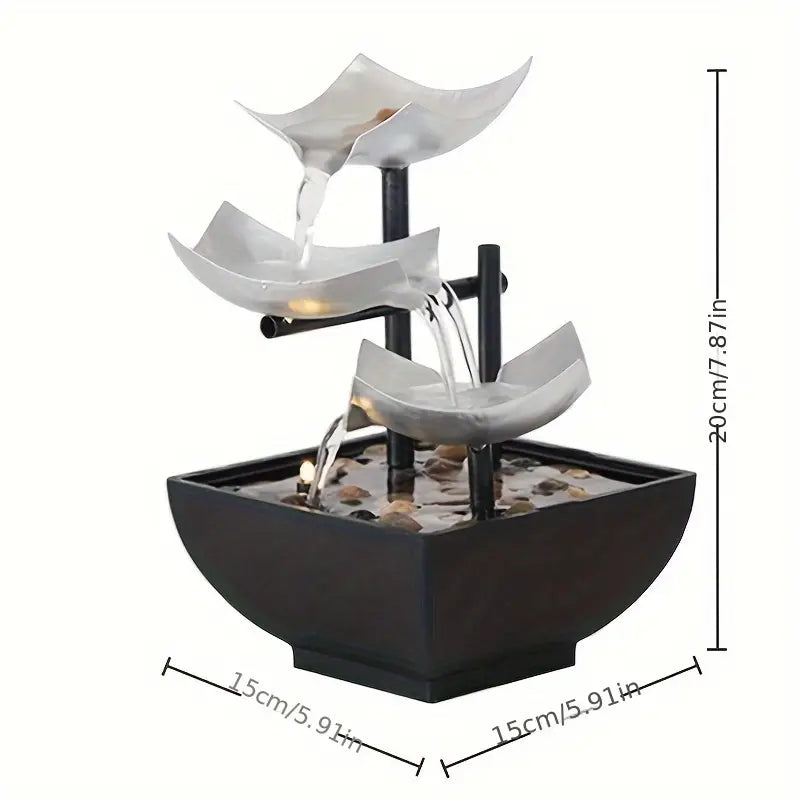 Unesite mir i eleganciju u svoj prostor sa ovom prelepom dekorativnom fontanom. Dizajnirana sa tri nivoa kaskadnih slapova, ova fontana kreira umirujući zvuk tečne vode koji će transformisati vašu dnevnu sobu, spavaću sobu ili kancelariju u oazu mira.