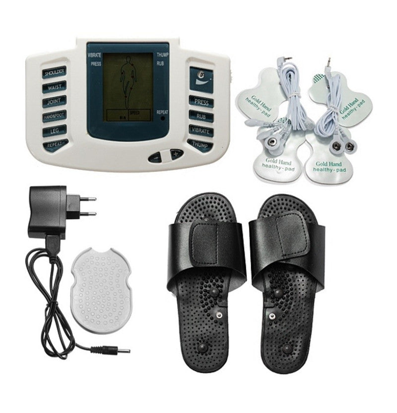 • Višenamjenski uređaj - Terapija bola, relaksacija mišića, mršavljenje, toniranje i oblikovanje tijela • LCD digitalni ekran - Jasna kontrola svih funkcija i praćenje tretmana u realnom vremenu • Više programa i režima - Različiti programi za različite potrebe (terapija, masaža, mršavljenje, akupunktura) • Akupresurne papuče - Stimulišu refleksne tačke na stopalima i poboljšavaju opšte zdravlje • Podesiva jačina - Prilagodite intenzitet od 1-20 nivoa prema vašim potrebama i toleranciji • Bezbolna terapija - Prirodan i neinvazivan način za ublažavanje bola i napetosti • Kompaktan i prenosiv - Lako ga nosite sa sobom i koristite bilo gdje • Jednostavna upotreba - Intuitivni kontrolni panel sa jasnim oznakama