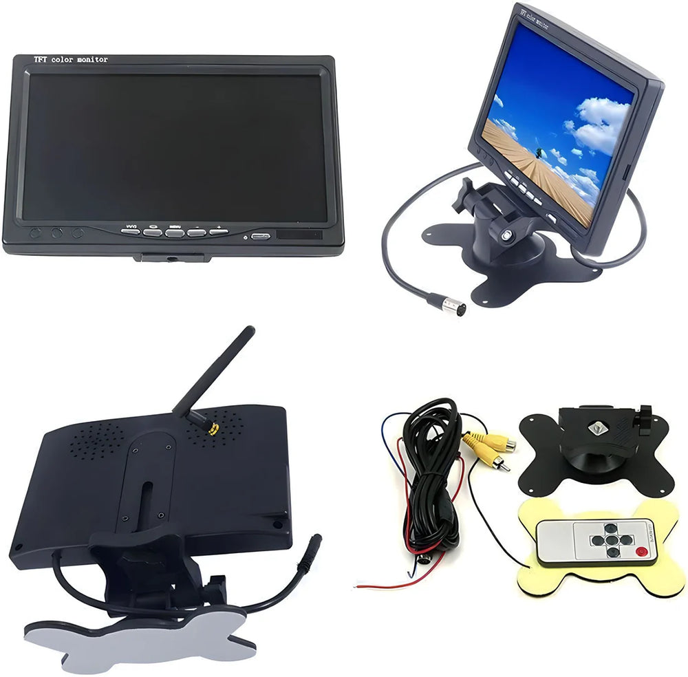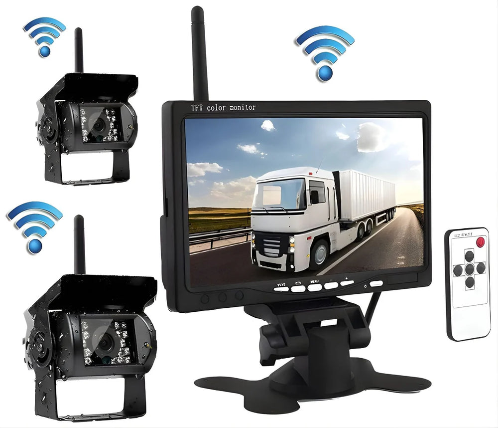 Ovaj komplet uključuje 2.4 GHz WiFi bežične rikverc parking kamere s IR noćnim režimom vidljivosti, posebno dizajnirane za veća vozila kao što su kamioni, autobusi, kombajni, traktori, radne mašine i drugi. Uz to, dobivate i 7-inčni TFT LCD široki bežični monitor.
