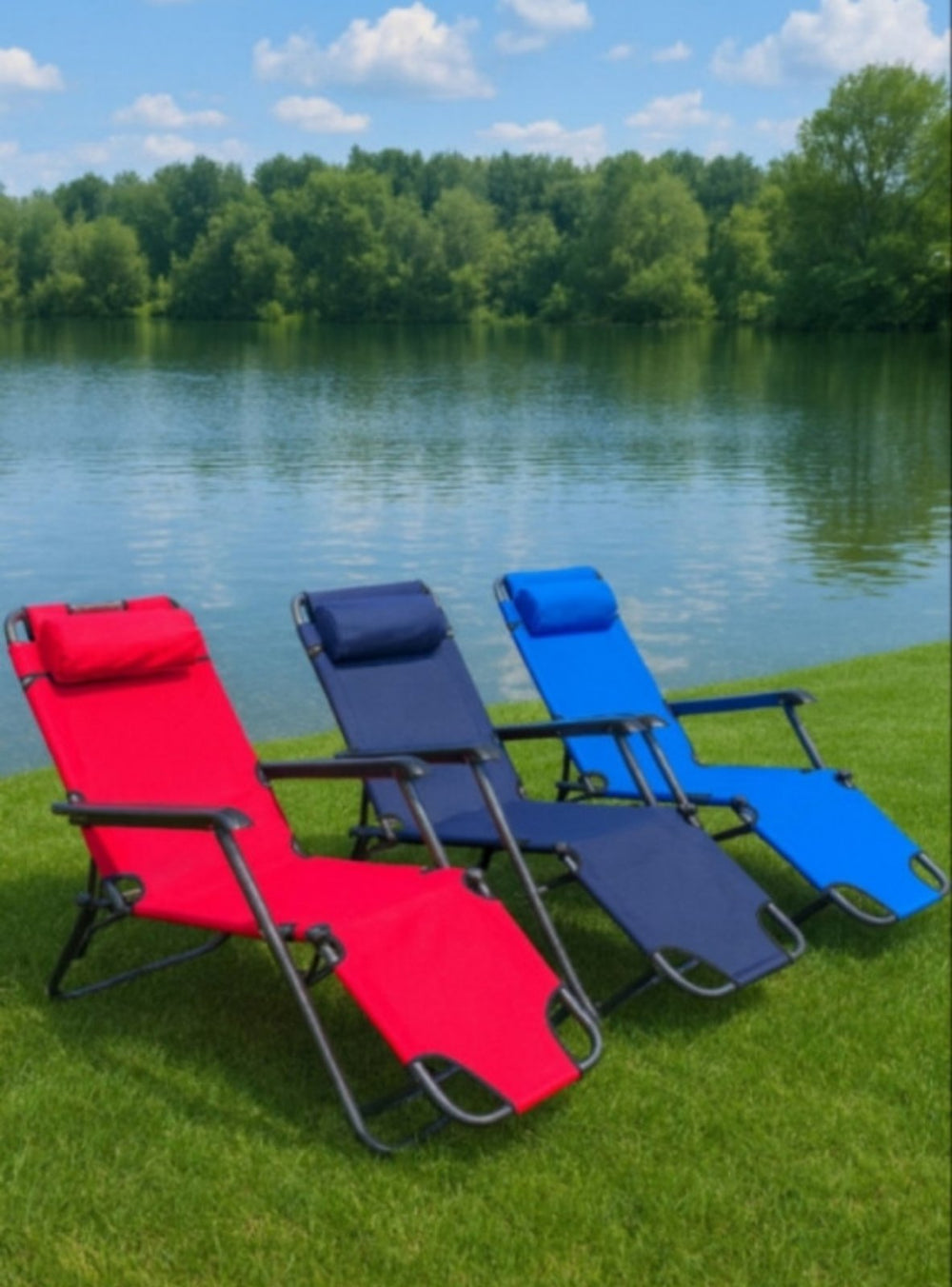 🌞 Podesivi položaj - 7 pozicija za maksimalnu udobnost 🎨 3 atraktivne boje - Crvena, tamno plava i svijetlo plava 🏕️ Lako sklapanje - Kompaktne za transport i čuvanje 💪 Čvrsta konstrukcija - Metalni okvir podnosi do 110kg 🧘 Ergonomski dizajn - Naslon za glavu i ruke za potpuno opuštanje