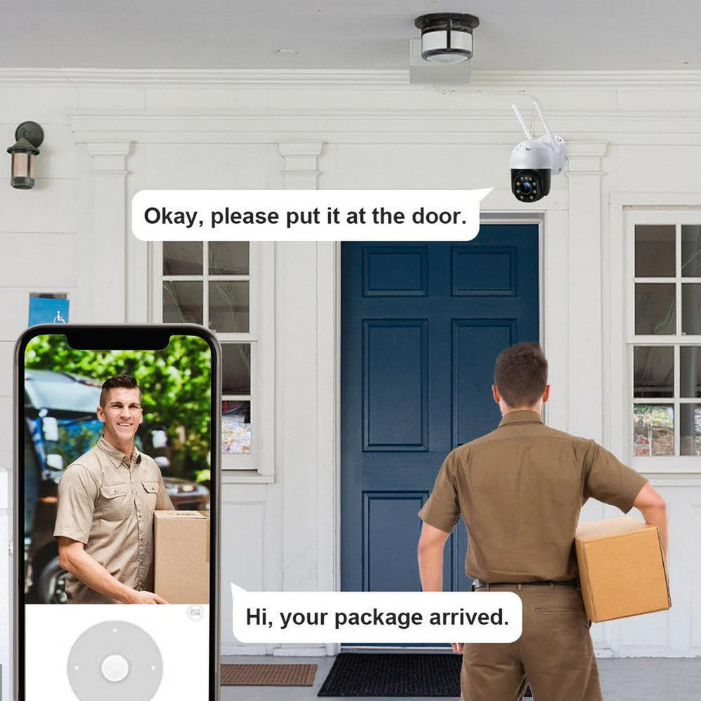 Sigurnosna kamera koristi infracrvenu tehnologiju za pružanje kristalno čiste slike, čak i u potpunom mraku. Novi generacijski CMOS senzor omogućava jasne slike u boji na udaljenosti do 30 metara. Kamera također podržava dvosmjerni zvuk, omogućujući vam komunikaciju s potencijalnim uljezima ili korisnicima kamere.