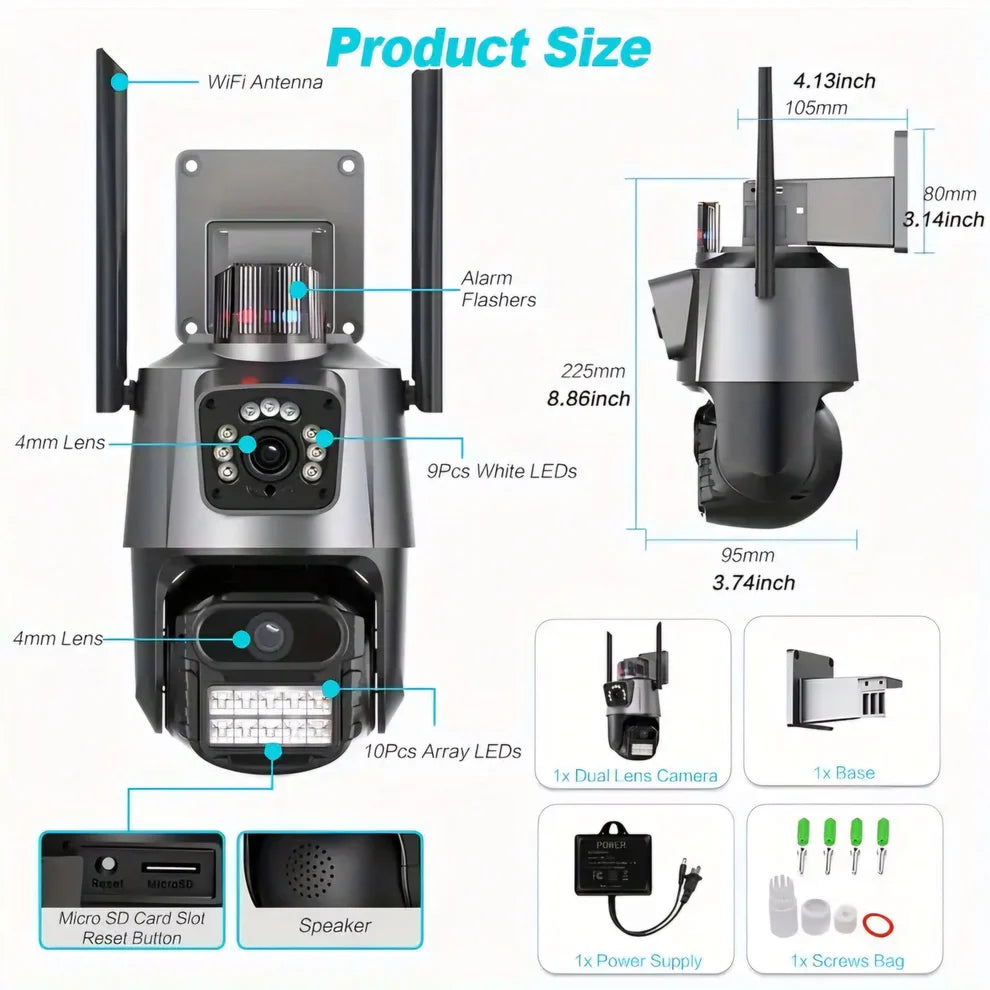 Dvostruki Zaslon i Dvostruka Leća: Uz širokokutni objektiv i telefoto objektiv, možete pratiti široko područje i zumirati kako biste vidjeli sve detalje. Fiksna točka i PTZ (Pan-Tilt-Zoom) tehnologija osiguravaju pokrivanje svakog kuta.